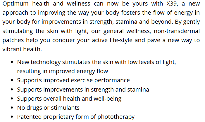 Your body emits heat in the form of infrared light and the X39® patches trap this light and reflect it back into the body through organic crystals that change its wavelength. This process, also known as photobiomodulation, makes the emitted light absorbable by your body and it signals the production of a unique GHK copper peptide. This copper peptide has been proven to increase stem cell activity and help them renew and rejuvenate. It also increases energy production in your cells through beta-oxidation and with it, reduces the appearance of wrinkles, lines, and other symptoms of aging.